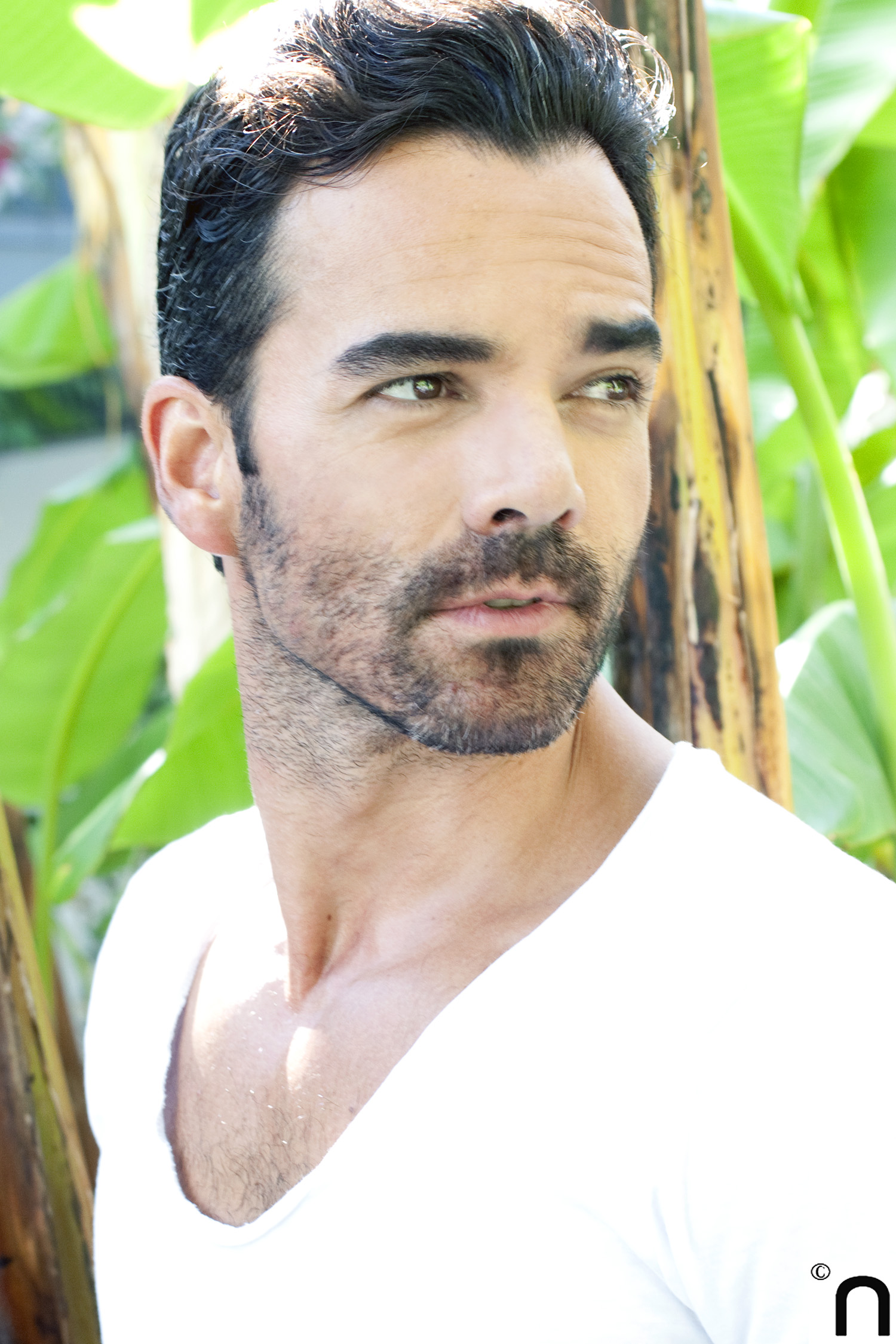 Los jardines típicamente californianos del Highland Gardens Hotel en el corazón de Hollywood, son la ubicación perfecta para tomar los retratos de Jesús Moré antes de regresar a su querido México para continuar con su nuevo proyecto, después del gran éxito de El Señor de los Cielos.