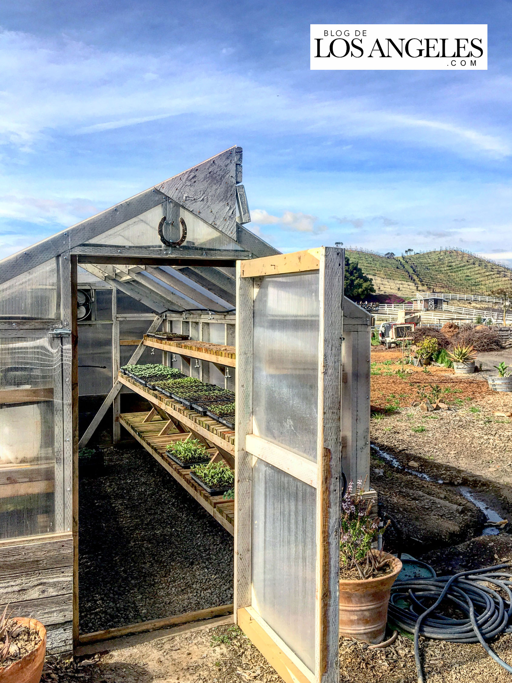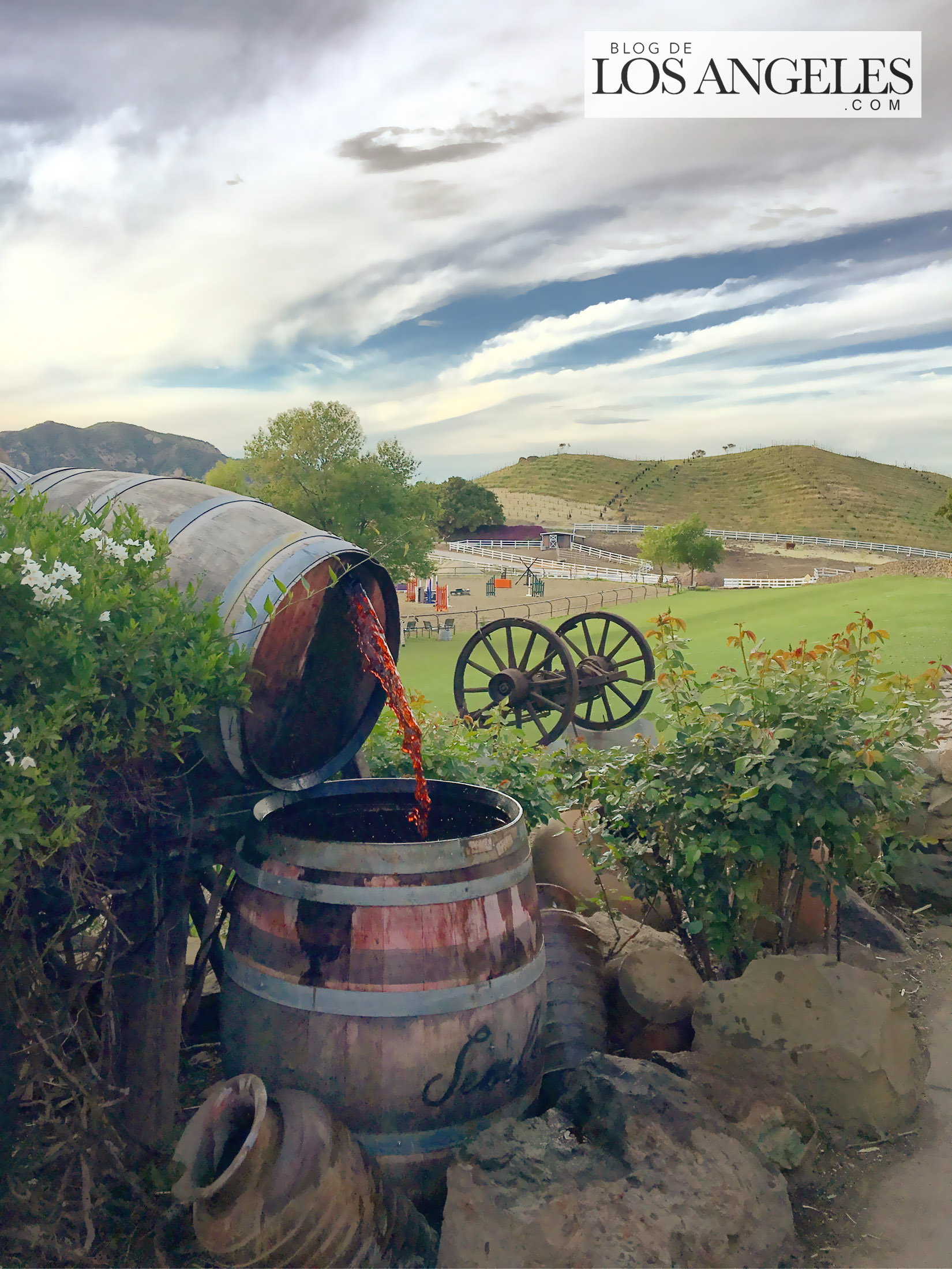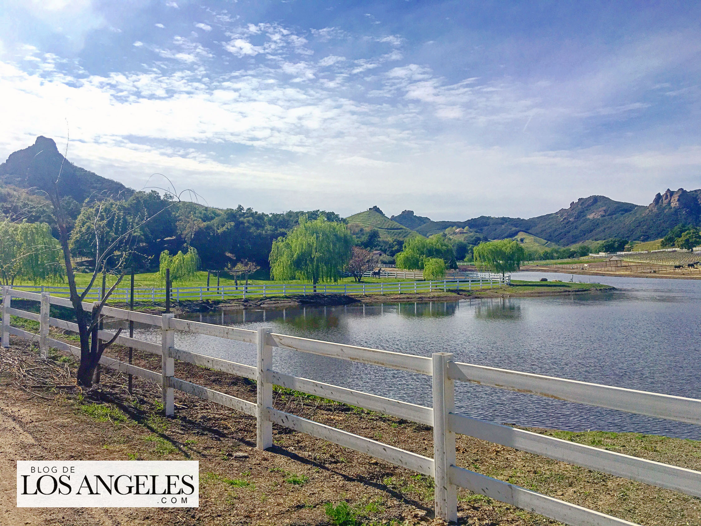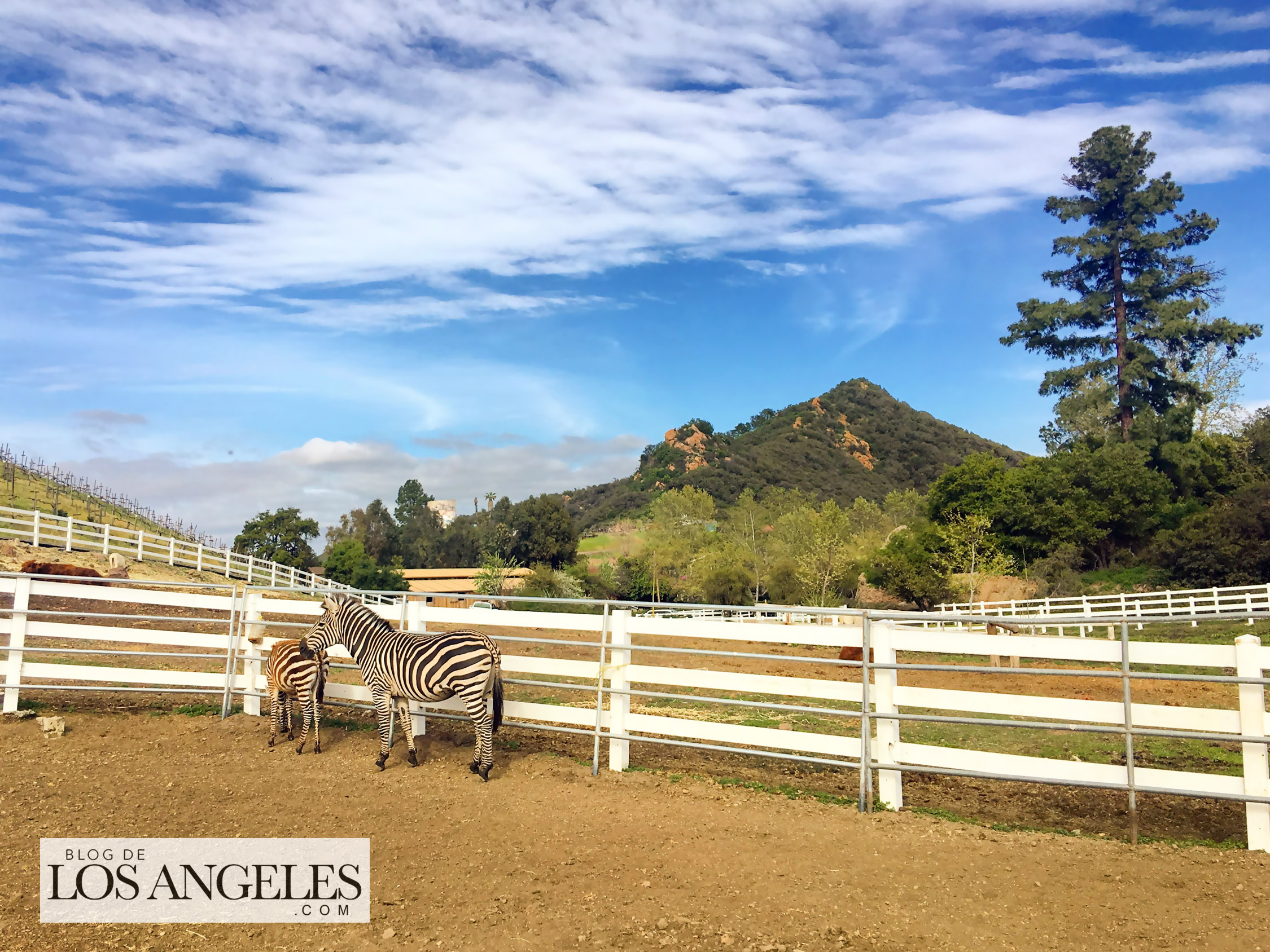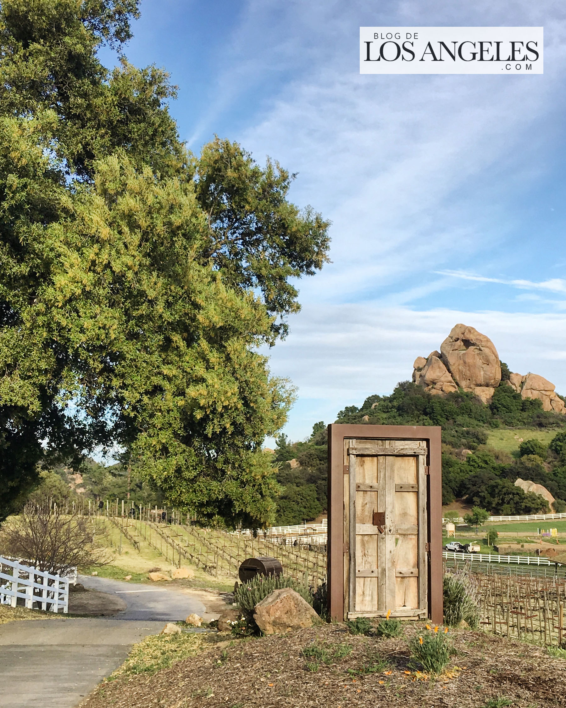 La vida me ha enseñado que cualquier mujer con cierto número de hijos, no importa el mal que haya hecho antes o vaya a hacer alguna vez en su vida, es una santa, PUNTO. Después de conversar un rato acerca de los pros y los contras de las grandes familias, me cayó muy bien. Era muy dulce. Fue después que averigüé que Lisa Semmler era la dueña de Saddlerock Ranch, una de las tres propiedades más alucinantes que he conocido en Málibu. Cuando me invitó a visitarle unos días después, la belleza del inmenso rancho que posee sobre las cimas más pintorescas del macizo de las Montañas de Santa Mónica, me quedé sin habla. Olvídate de los animales exóticos que posee, o del delicioso vino que los Semmler producen ahí mismo en sus viñedos… ¡El paisaje! La energía del lugar, la luz, los árboles, el viento… Recorrerlo caminando con Lisa mientras me contaba su vida y la historia del rancho, fue como dar un pequeño paseo por el paraíso. Tenía que tomarle fotos (no te pierdas la galería) y compartirlo con vosotros aquí, EN EXCLUSIVA, en el BLOG DE LOS ANGELES, porque si estás en L.A. y aún no lo conoces, TIENES QUE VISITAR SADDLEROCK RANCH. Y si en algún momento asoma la envidia a tus ojos, no te preocupes, somos humanos. Repítete conmigo, porque en algo consuela: los ricos también lloran, los ricos también lloran…