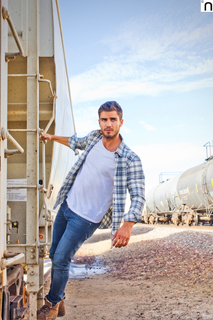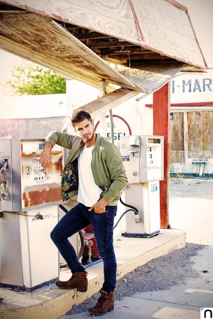 Este actor español tiene una gran trayectoria artística. Ha participado en series como Los Protegidos, Física y Química, La Reina del Sur, Velvet… Le propongo que hagamos una entrevista para el Blog De Los Angeles y, para hacer las fotos, me lo llevo a un sitio que estoy segura de que le va a encantar… Es un viejo tramo de la Ruta 66, un pedazo del recuerdo americano medio abandonado, que conserva la magia de los sitios en decadencia, al comienzo del desierto de California… Por ahí perdidos corremos un par de aventuras: desde un tipo que sale a nuestro encuentro, sin camiseta y con un solo brazo, a amenazarnos con una pistola para que salgamos de “su parcela” en ruinas, hasta una familia numerosa de afroamericanos que surgen de otra casa medio destruida para rodearnos con curiosidad en un segundo… Pero que a nadie le extrañe, es que así es la vida de los acuarios creativos, no queremos que ningún día se parezca al siguiente, y ese, que yo sepa, quedará para el recuerdo de nuestras primeras fotos juntos… Mission accomplished!
